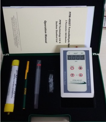 PPM-400ST是一種使用方便,手持直接讀式,用以快速檢測空氣甲醛含量的儀器。 采用電化學檢測空氣中的甲醛濃度,儀器內置電化學傳感器、內部泵,當開啟采樣泵時,氣體被吸入傳感器中,甲醛傳感器對空氣中甲醛敏感,通過儀器顯示屏數字甲醛濃度??焖?、幾分鐘就能完成空氣中甲醛濃度的測量。